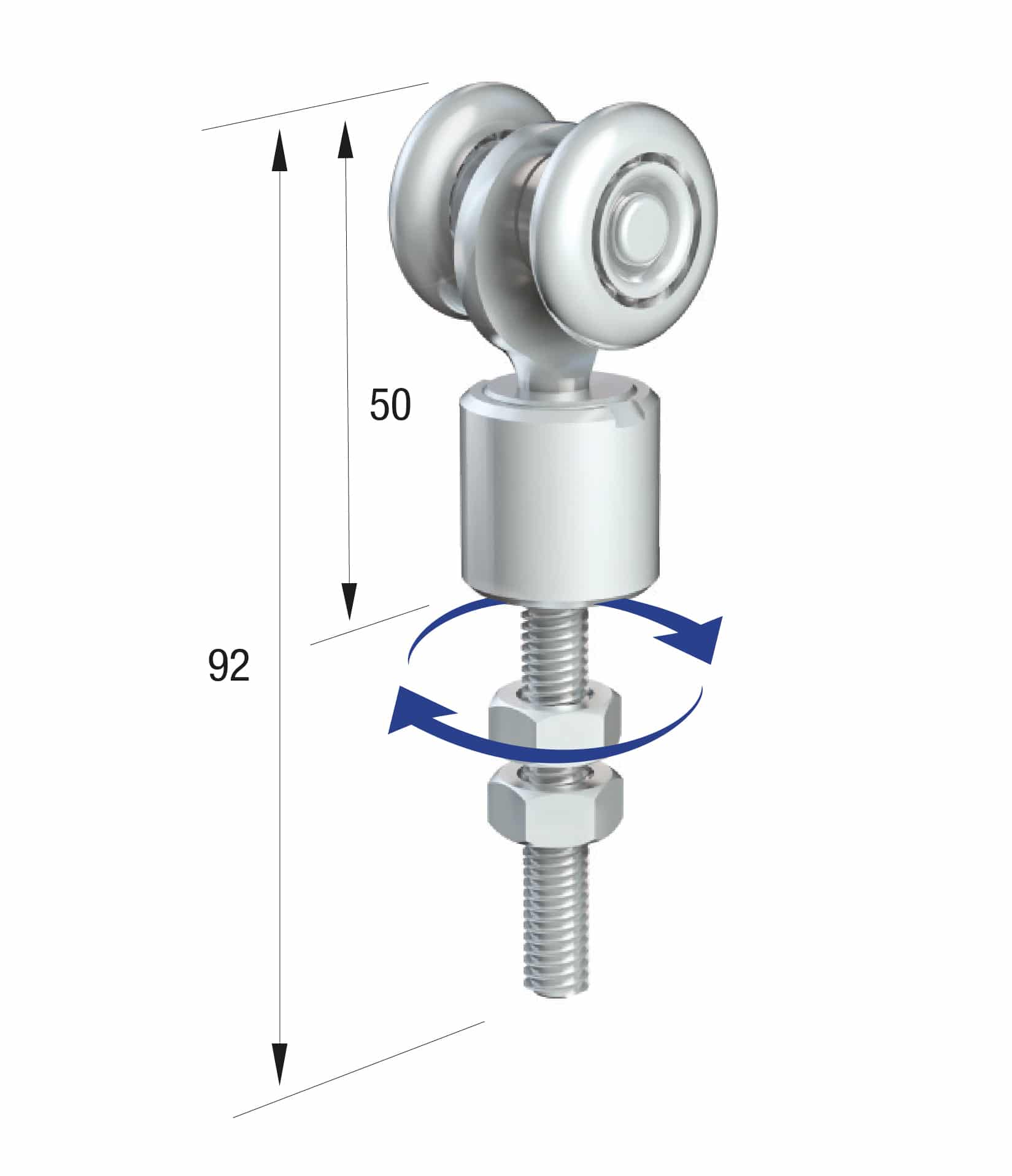 (20-86) Series 20 Single Axle Rotating Steel Wheel Hanger, M8 x 46mm Pin, 35Kg Capacity
