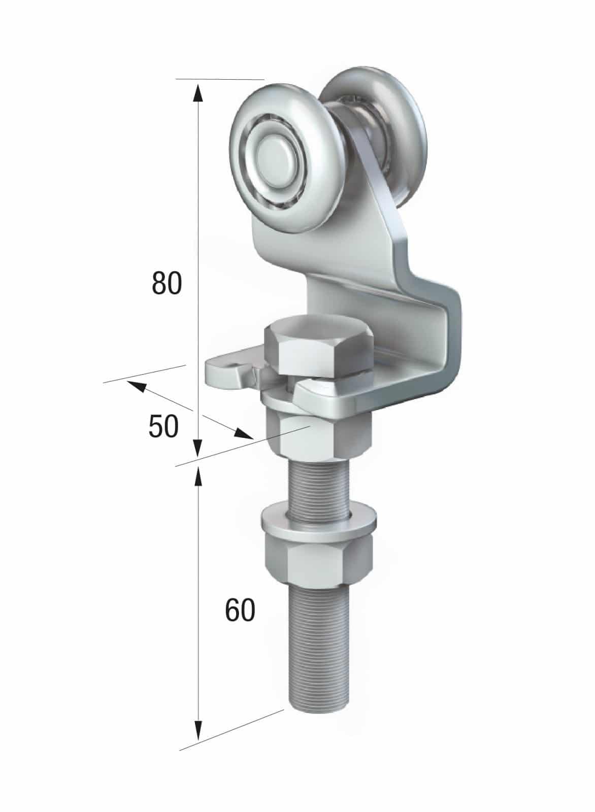 (50-1272) Series 50 Single Axle Steel Wheel Hanger With Cranked Mounting Plate, 110Kg Capacity With M16 Thread